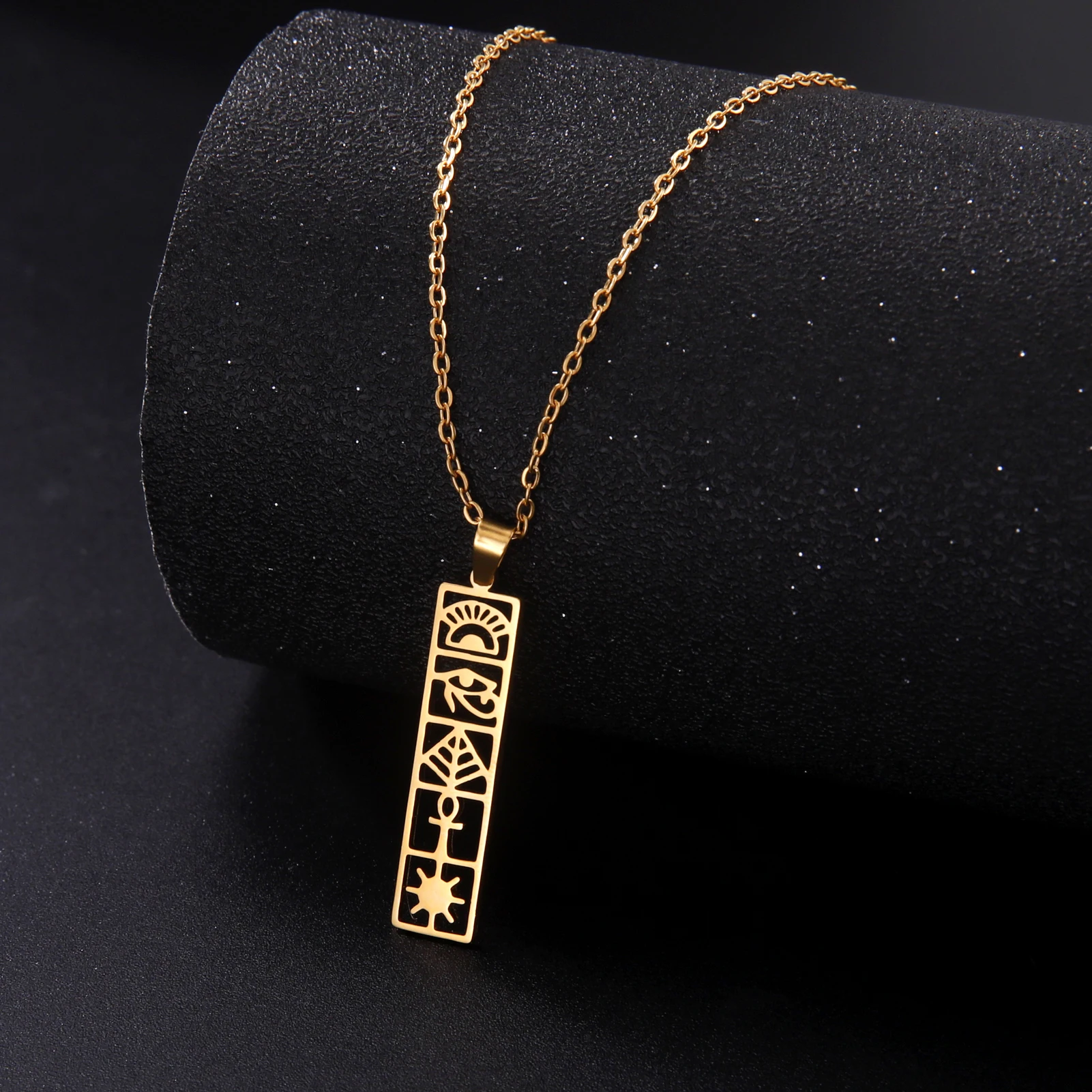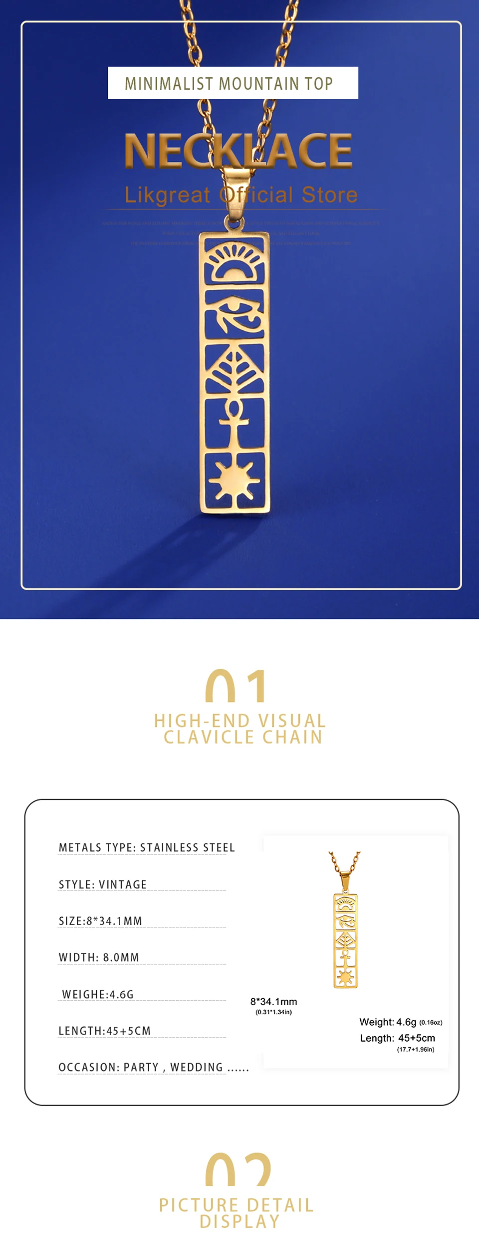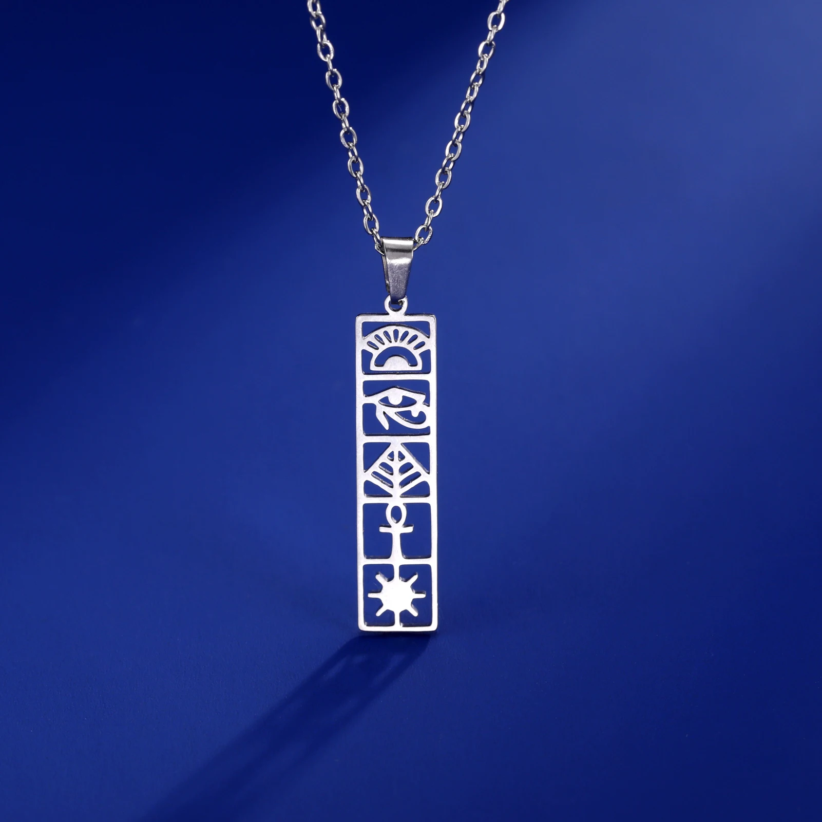 LIKGREAT Amulet Pendant Square Egyptian Ankh Hieroglyphs Necklaces Eye of Horus Ancient Egypt Goddess Wings Protection Jewelry